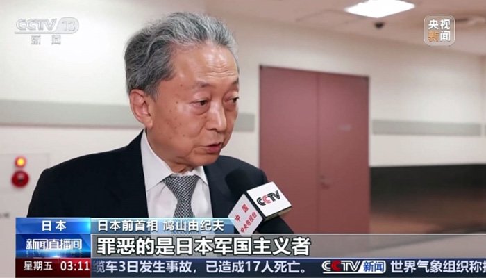 بیجنگ (ویب ڈیسک) چین میں جاپانی جارحیت کے خلاف چینی عوام کی مزاحمتی جنگ اور عالمی فاشسٹ مخالف جنگ کی فتح کی 80 ویں سالگرہ کے موقع پر منعقدہ یادگاری تقریب میں شرکت کے بعد جاپان کے سابق وزیرِ اعظم یوکیو ہاتویاما نے چائنا میڈیا گروپ کو خصوصی انٹرویو دیتے ہوئے کہا کہ وہ اس بار معافی اور ندامت کے جذبے کے ساتھ چین گئے تھے۔