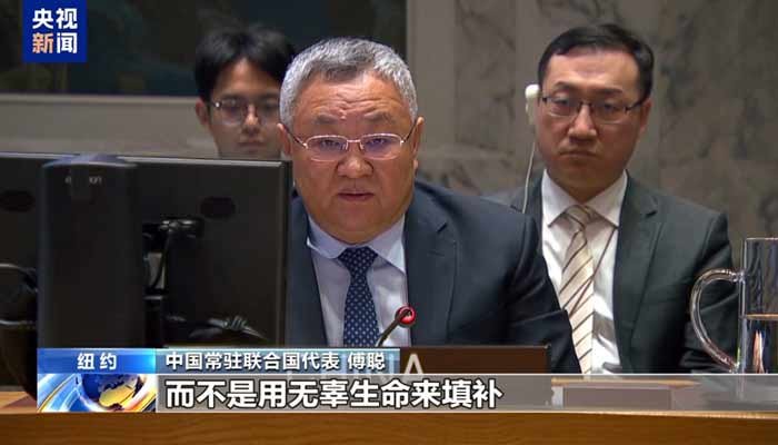 اسرائیلی فوج نے شمال کے واحد جامع طبی خدمات کے ادارے کمال عدوان ہسپتال پر حملہ کیا  جس کے نتیجے میں بڑی تعداد میں لوگ  جاں بحق  ہوئے۔چینی مندوب نے کہا کہ یہ بین الاقوامی قانون بالخصوص بین الاقوامی انسانی قانون کی سنگین خلاف ورزی ہے اور چین اس کی شدید مذمت کرتا ہے۔ان کا کہنا تھا کہ  چین نے اسرائیل پر زور دیا ہے کہ وہ بین الاقوامی انسانی قانون کے تحت اپنی ذمہ داریوں کی سنجیدگی سے پابندی کرے، اسپتالوں کو میدان جنگ میں تبدیل کرنا بند کرے، طبی سہولیات پر حملے بند کرے۔