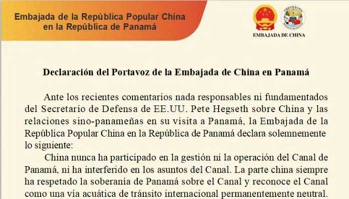 بدھ کے روزبیان میں کہا گیا ہے کہ چین نے کبھی بھی پاناما کینال کے انتظام اور آپریشن میں حصہ نہیں لیا اور نہ ہی کبھی کینال کے معاملات میں مداخلت کی ہے۔تاریخی طور پر کینال کو صرف ایک ہی بار کاٹا گیا، اور وہ امریکی جارحیت کی وجہ سے تھا۔اعلامیے کے مطابق چین اور پاناما نے نومبر 2017 میں بیلٹ اینڈ روڈ انیشٹو پر مفاہمت کی یادداشت پر دستخط کیے تھے اور دونوں ممالک کے درمیان تعاون کے کامیاب نتائج برآمد ہوئے ہیں جس سے پاناما اور اس کے عوام کو ٹھوس فوائد حاصل ہوئے ہیں۔